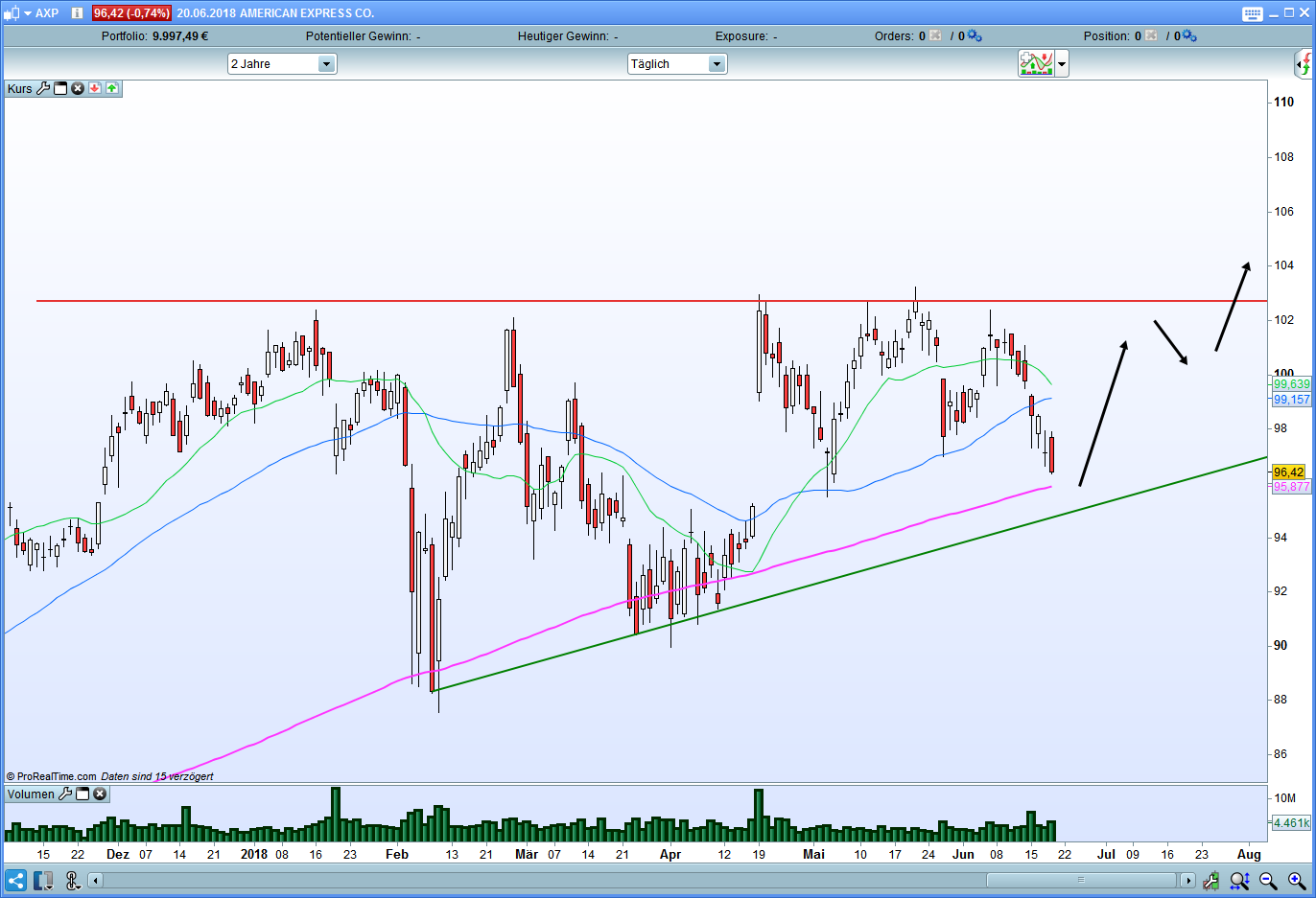 American Express mit aufsteigendem Dreieck
