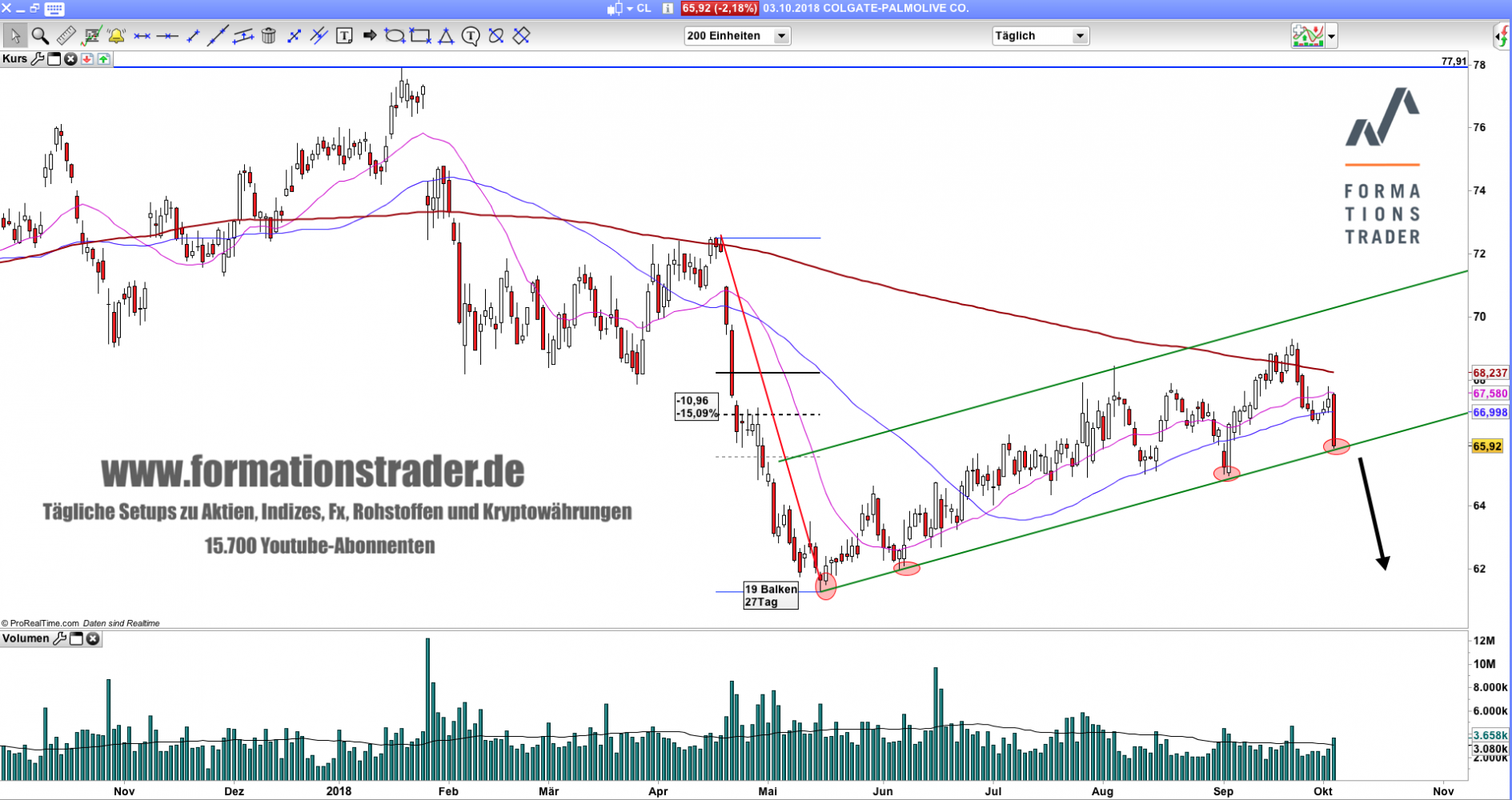 Der auf Mundpflege spezialisierte Konzern Colgate-Palmolive veröffentlichte zuletzt am 27.Juli seine Quartalszahlen. Demnach wurde der Gewinn je Aktie mit $0.77 und der Umsatz in Höhe von $3.9 Mrd. angegeben. Die Erwartungen der Analysten waren im Konsens bei $0.77 bzw. $4.0 Mrd. Am 26.10. wird sich der Konzern erneut in die Bücher schauen lassen.