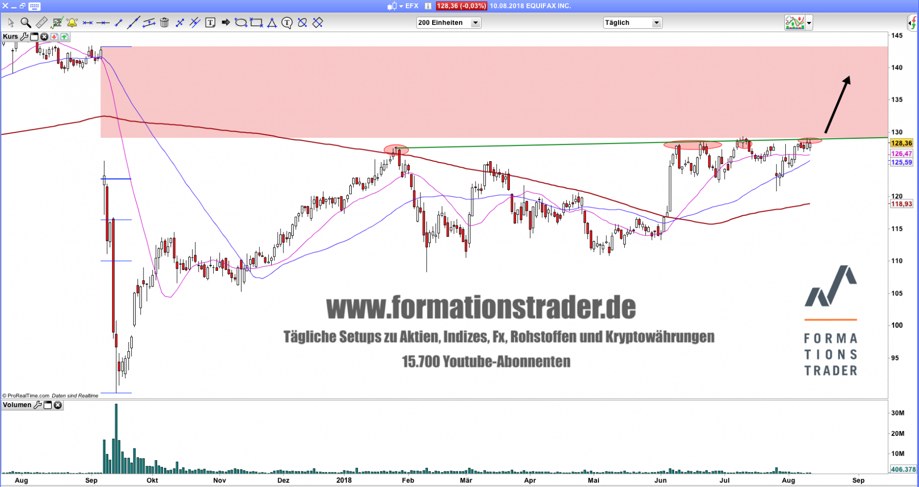 Der Chart des US-Finanzdienstleister Equifax befindet sich aktuell in einer interessanten Situation.