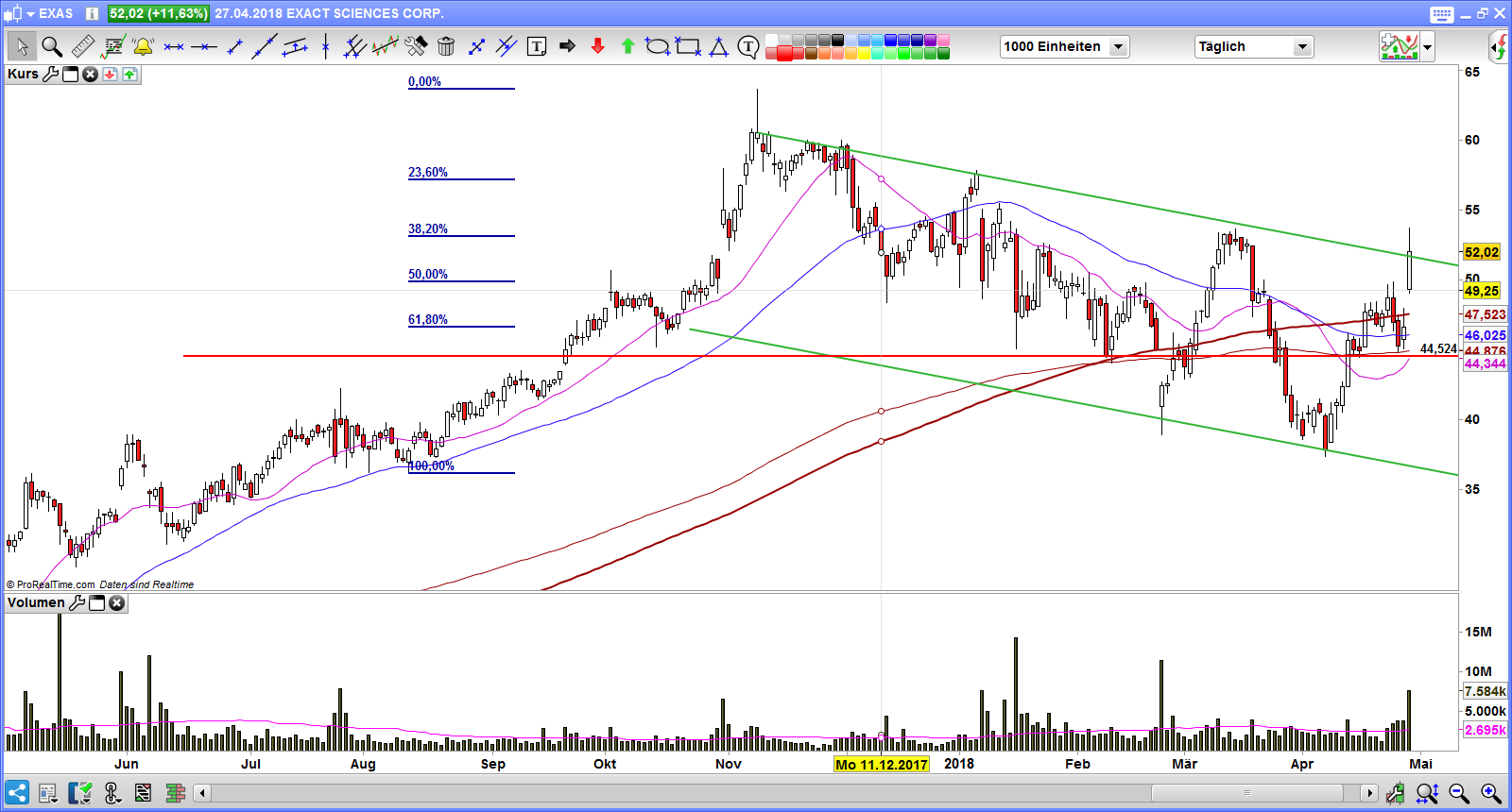 Exact Sciences Corp. konsolidiert seit dem Allzeithoch im November 2017.