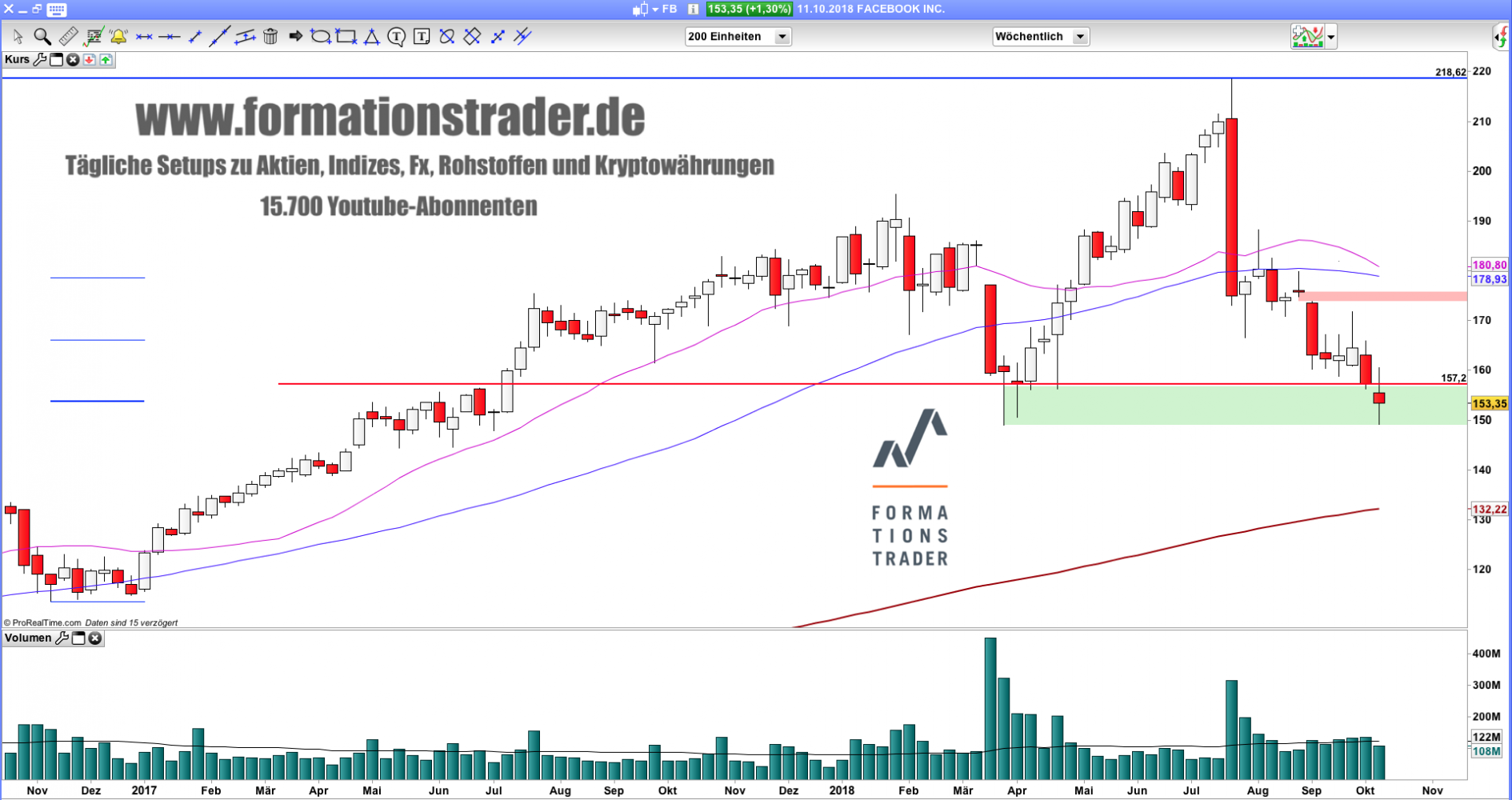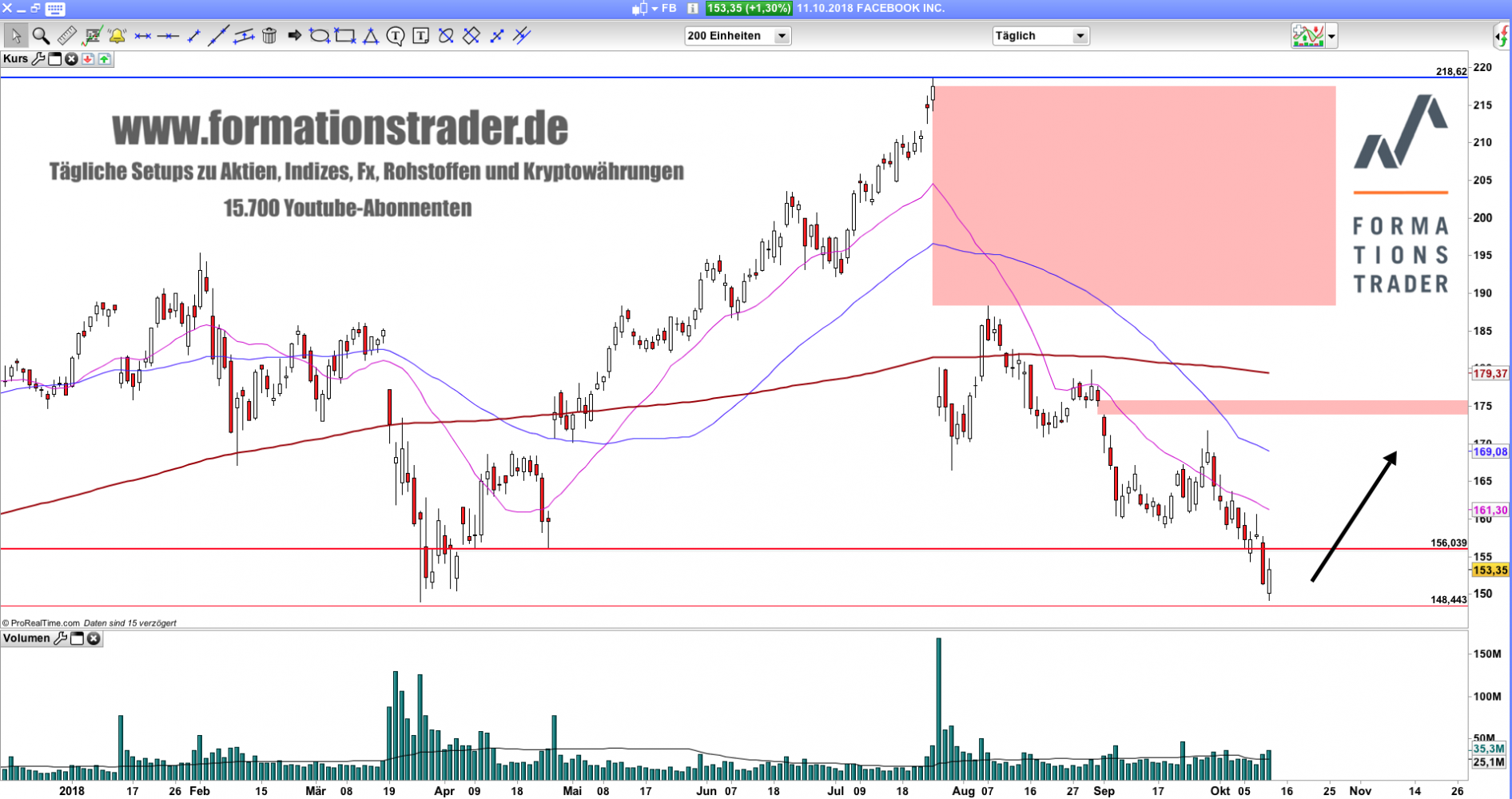 Der Kurs von Facebook kann nach den schlechten Quartalsergebnissen aus dem zweiten Quartal aktuell nicht an die alten Kurse über $200 anschließen. Ende Juli berichtete das Unternehmen von einem Umsatz, der deutlich hinter den Erwartungen der Analysten blieb und warnte zugleich vor einer Sättigung des Marktes in Bezug auf die Nutzerzahlen. Aktuell werden die Anteile von Facebook mit einem Abschlag von rund 30% gegenüber dem Allzeithoch vor den Quartalszahlen gehandelt.