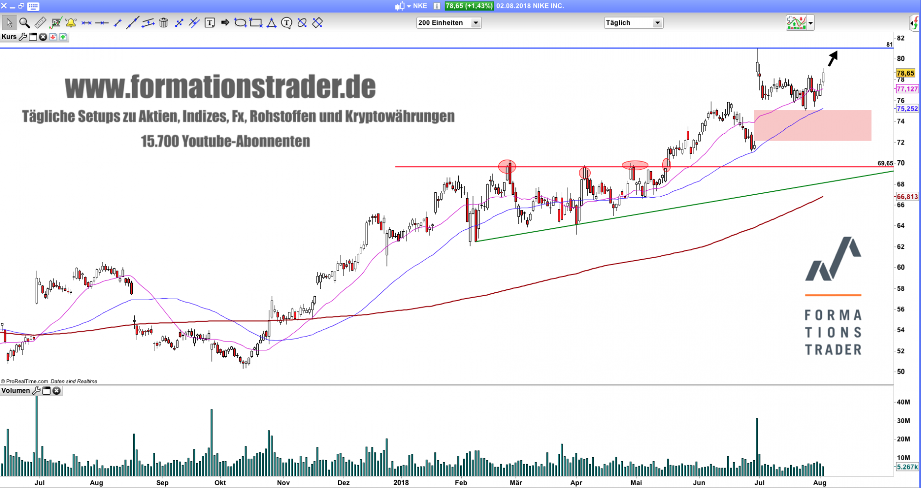Der US-amerikanische Sportartikel-Hersteller Nike konnte zuletzt mit beeindruckenden Quartalsergebnissen überzeugen. Das Unternehmen übertraf sowohl die Prognosen beim Umsatz als auch beim Gewinn. Außerdem wurde ein Aktienrückkaufprogramm bekanntgegeben, wonach man in den kommenden vier Jahren Aktien in Höhe von 15 Milliarden US-Dollar in den eigenen Bestand zurückführen will.