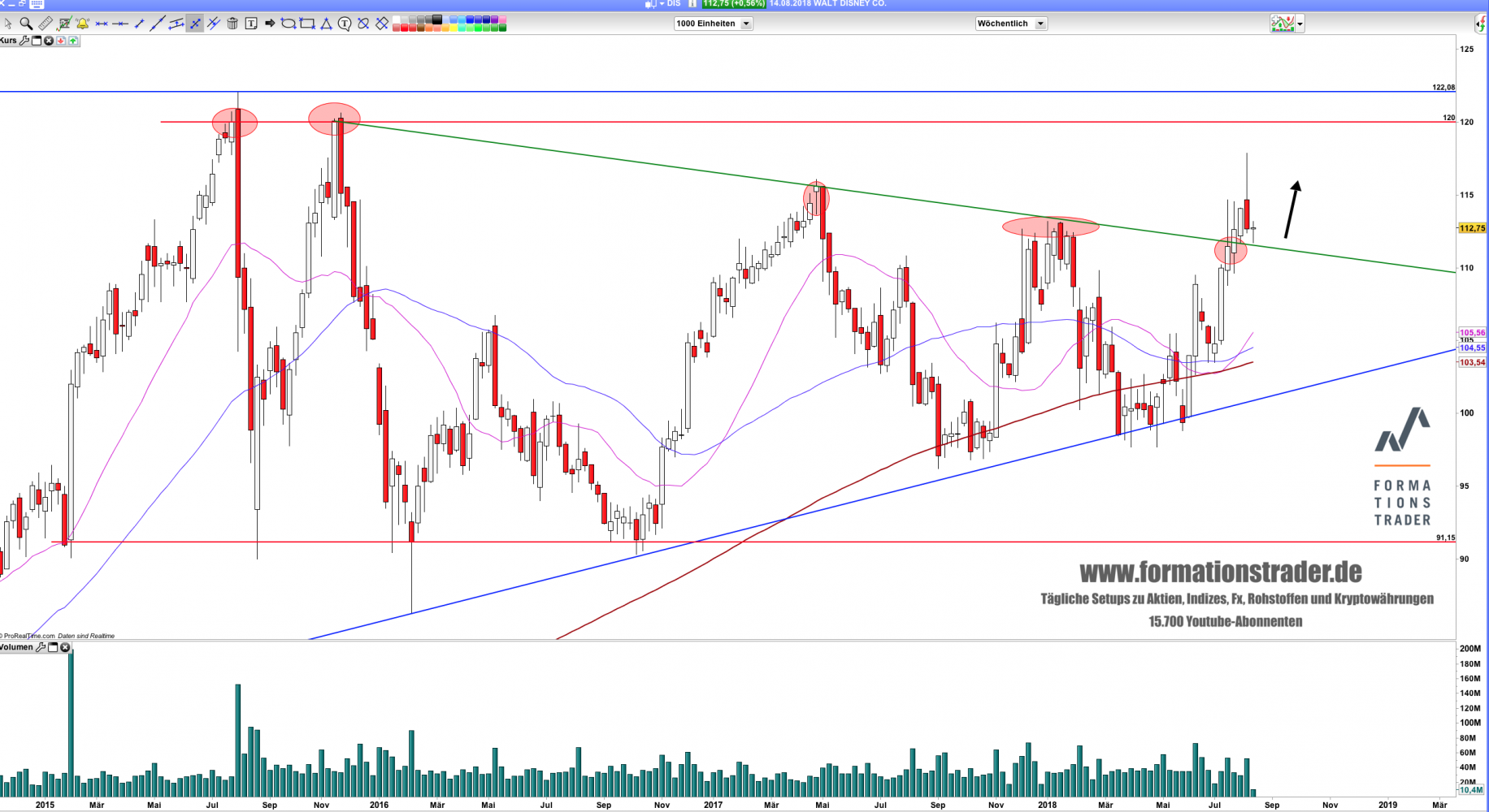 Die Aktie von Walt Disney gab in den vergangenen Tagen daraufhin nach. Der Kurs befindet sich nun wieder nahe der zuvor gebrochenen Widerstandslinie im Wochenchart.