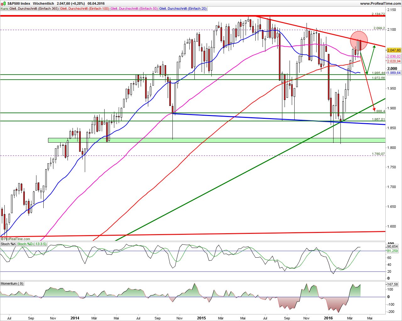 2016-April-09 US-Märkte & Indizes Wochenausgabe "Chartverlauf weiterhin bullisch – auf Einstiegs-CRV achten"