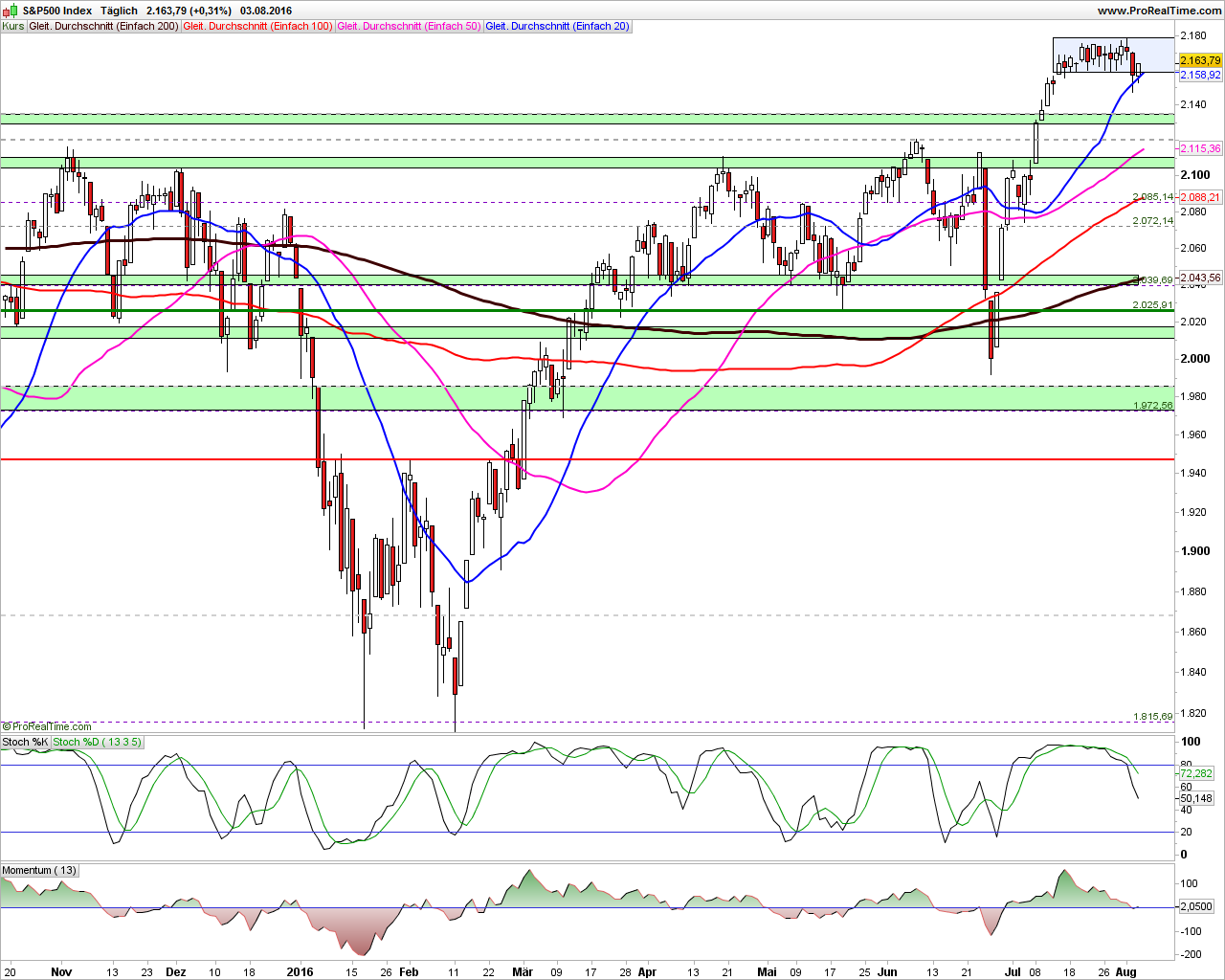 2016-August-04 US-Märkte & Indizes Tagesausgabe "DAX und S&P500 – bullischer Chartverlauf bleibt erhalten"