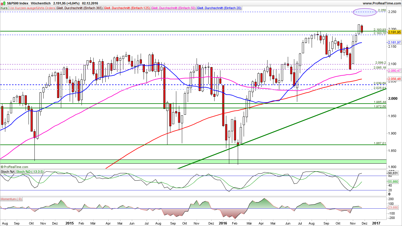 2016-Dezember-04 US-Märkte & Indizes Wochenausgabe "S&P 500 Konsolidierung verläuft bisher mit bullischen Charakter"