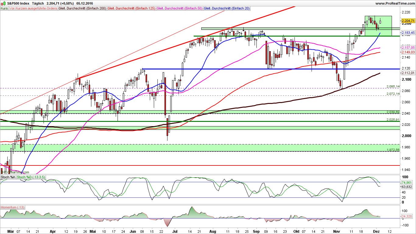 2016-Dezember-06 US-Märkte & Indizes Tagesausgabe "Konsolidierung oberhalb der 2.183 ist bullisch zu bewerten"