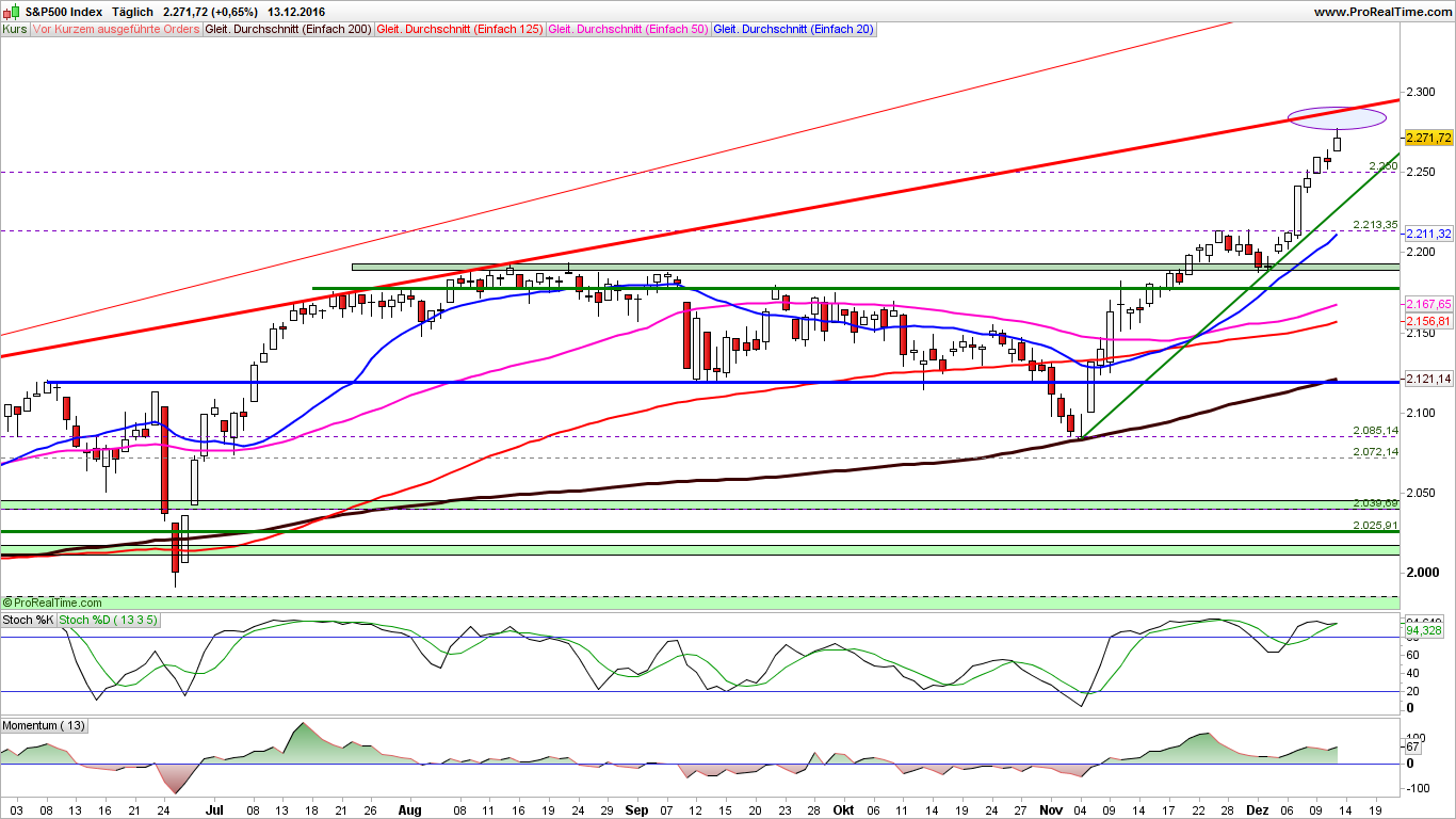 2016-Dezember-14 US-Märkte & Indizes Tagesausgabe "Gewinnmitnahmen und Wechsel in eine Konsolidierung ist zu erwarten"
