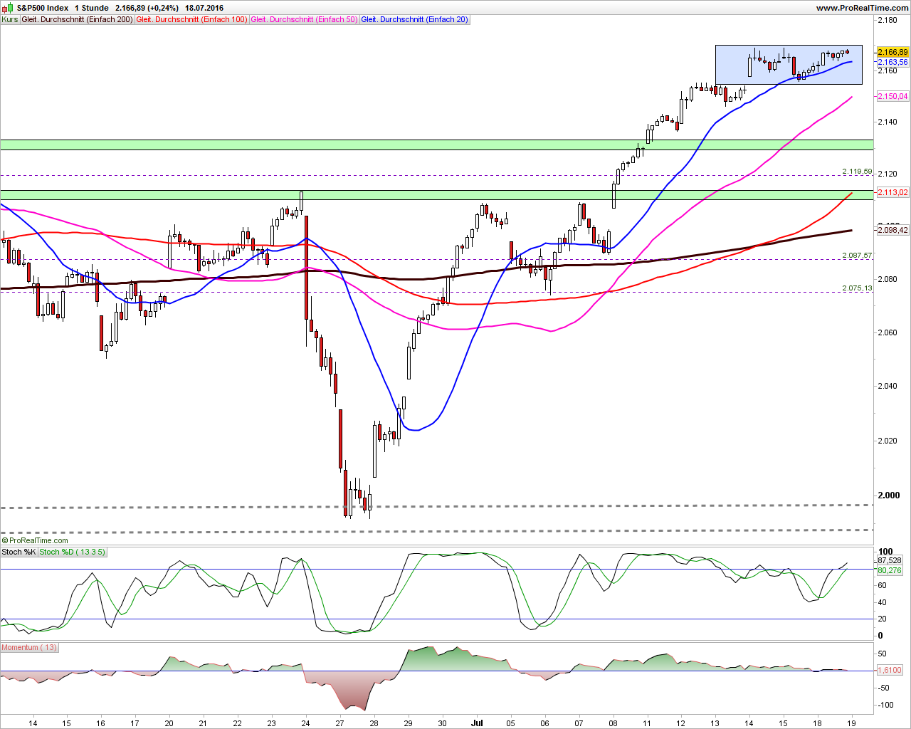 2016-Juli-19 US-Märkte & Indizes Tagesausgabe "S&P 500 konsolidiert bullisch auf hohem Niveau"
