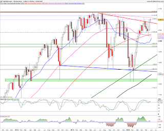 Fazit: Der aktuelle Chart ist weiterhin als bullisch einzustufen. Eine Entscheidung über den weiteren Verlauf wird in den kommenden Tagen oberhalb der 2.111 oder unterhalb der 2.085er Marke eingeleitet. Für die seit Mitte Februar laufende Aufwärtsbewegung ist die Unterstützung bei 2.026 Punkten entscheidend. Unterhalb dieser Marke wäre die Aufwärtsbewegung abgeschlossen. Solange diese Marke aber nicht unterschritten wird, ist ein Angriff auf das Allzeithoch bei 2.135 Punkten die bevorzugte Richtung. Einstiege bei Aktien sind daher auf der Longseite zu suchen.