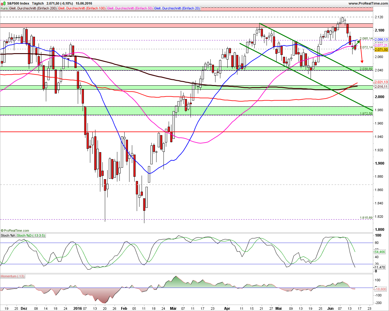2016-Juni-17 US-Märkte & Indizes Tagesausgabe "Bullisches Reversal als erstes Signal für ein Ende der Konsolidierung?"