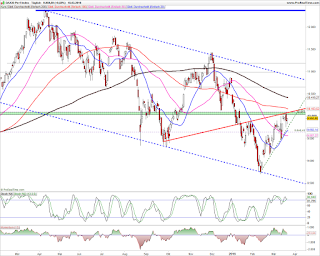 DAX Tageschart (kurzfristig): Der DAX zeigt derzeit aufgrund des steigenden EUR/USD gegenüber dem S&P 500 eine deutlich schwächere Performance. Im Gegensatz zum Leitindex konnte der DAX seinen psychologischen Widerstand bei 10.000 Punkte noch nicht überwinden. Die 10.000 Punktemarke als Widerstand wird zudem durch einen horizontalen Widerstand und einer inneren (rote Linie im DAX Tageschart) Trendlinie verstärkt. Das sich daraus aktuell zuspitzende Dreieck lässt nur noch wenig Schwankungsspielraum, so dass mit einer dynamischen Bewegung in den kommenden Tagen gerechnet werden kann. Gelingt es den Bullen in den kommenden Tagen die 10.000er Marke zu überwinden, ist weiteres Aufwärtspotential bis zum 200 Tage gleitenden Durchschnitt bei 10.415 Punkten realistisch. Auf der Unterseite ist es wichtig, dass der DAX nicht mehr unter die 9.500er Marke fällt, da in diesem Fall mit einer größeren Korrektur bis zur 9.000 Punkte gerechnet werden muss.