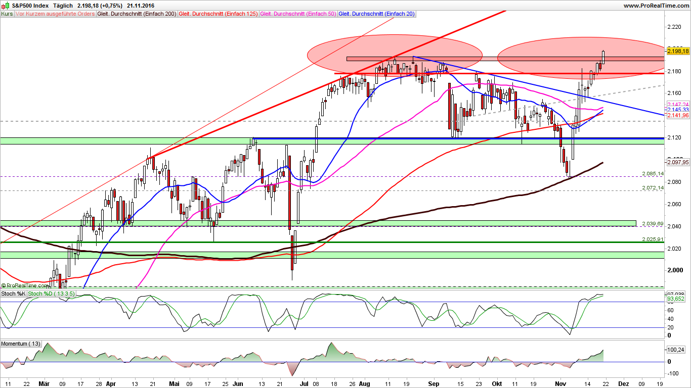 2016-November-22 US-Märkte & Indizes Tagesausgabe "Bullisches Signal - S&P 500 mit neuem Allzeithoch"