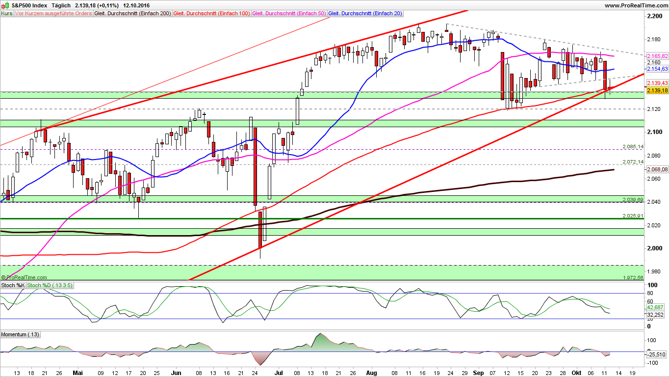 2016-Oktober-13 US-Märkte & Indizes Tagesausgabe "Die Bären gehen in Stellung, um die 2.120 zu durchbrechen!"