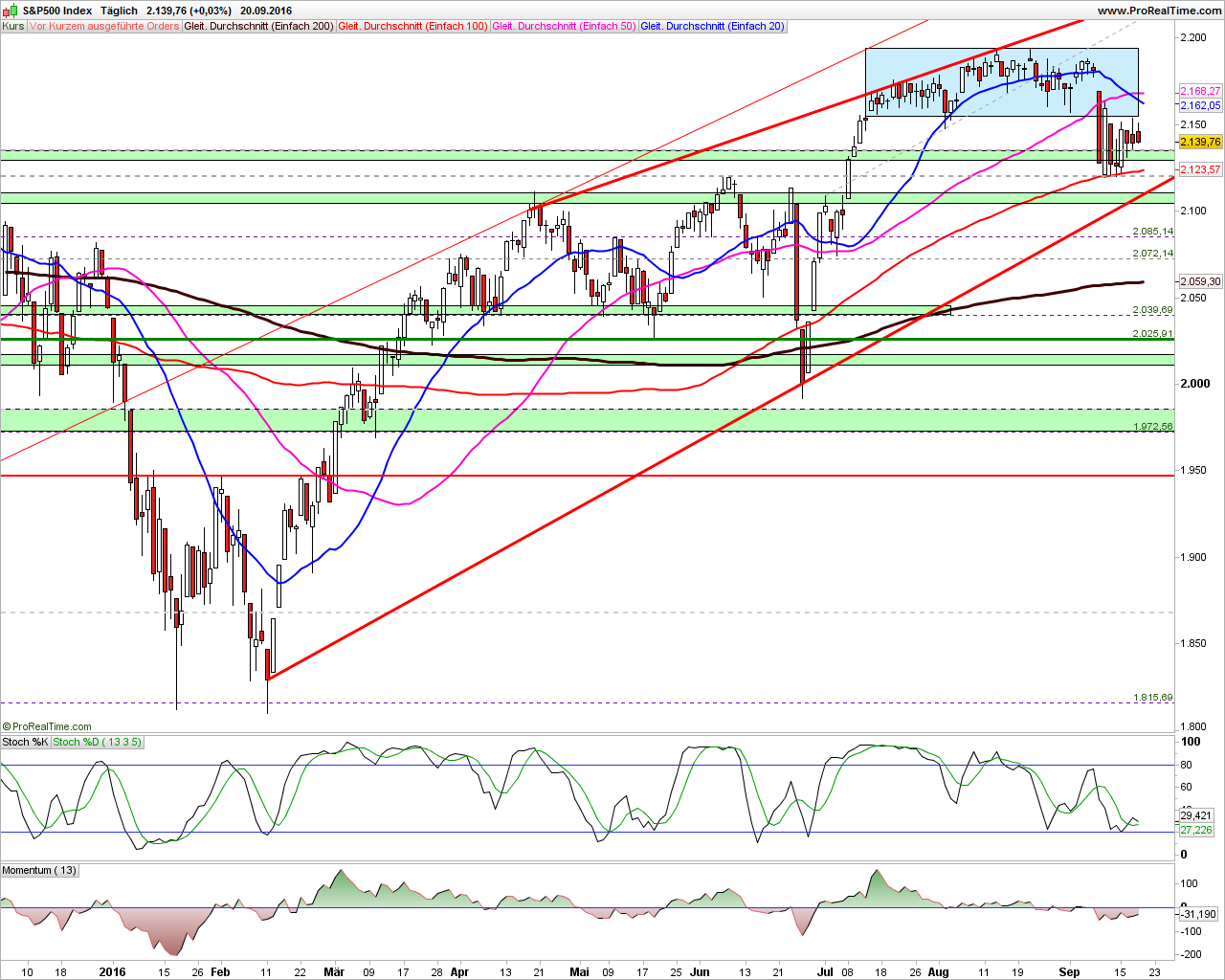 2016-September-21 US-Märkte & Indizes Tagesausgabe "Warten auf die FED-Sitzung am Mittwoch II"