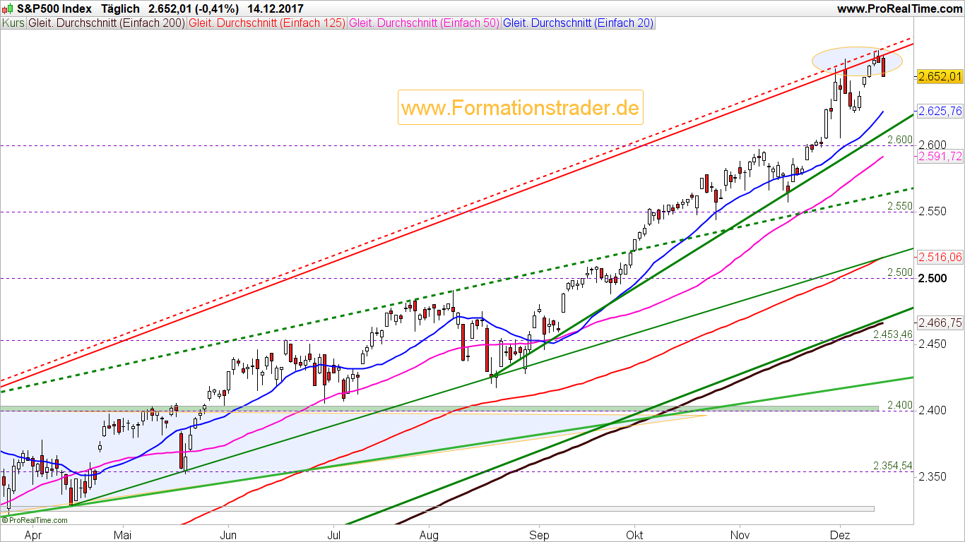 2017-Dezember-15 Leitindex S&P 500 Tagesausgabe "Der starke Widerstand an der trendbegrenzenden Linie bestätigt sich!"