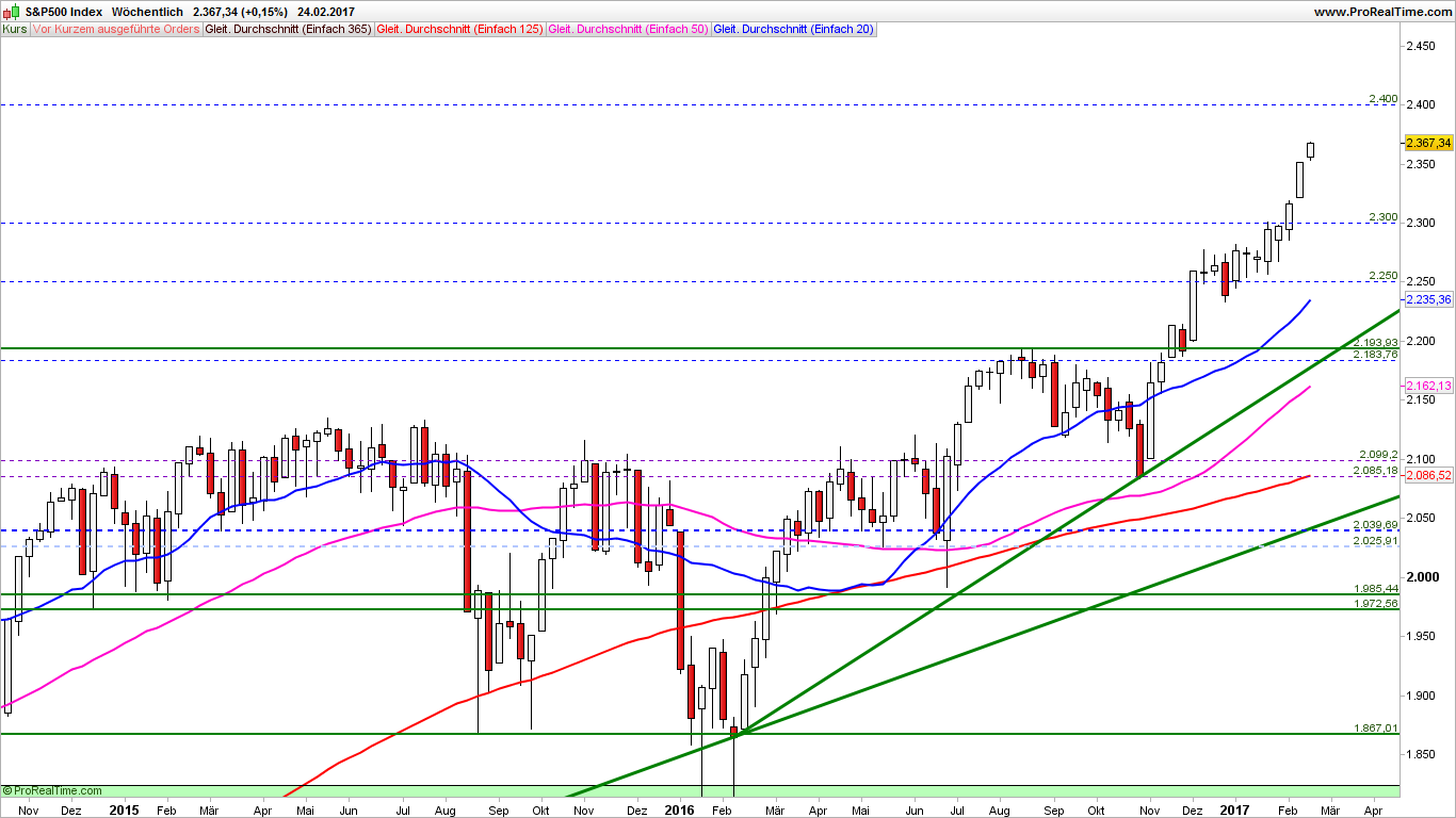 2017-Februar-27 US-Märkte & Indizes Wochenausgabe "Der Aufwärtstrend ist intakt, auch wenn die Gefahr einer Korrektur stetig zunimmt"