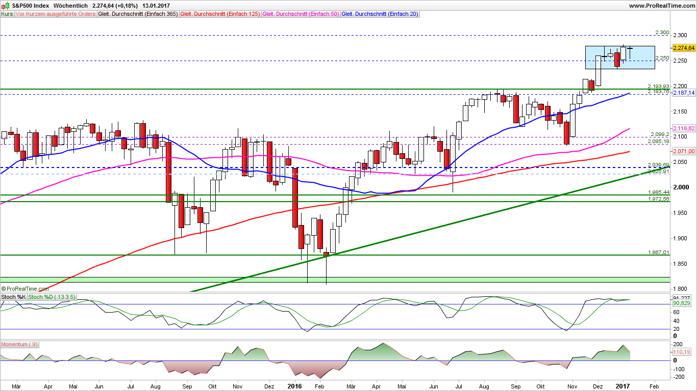 2017-Januar-16 US-Märkte & Indizes Wochenausgabe "S&P 500 - nächstes Ziel 2.300 Punkte"