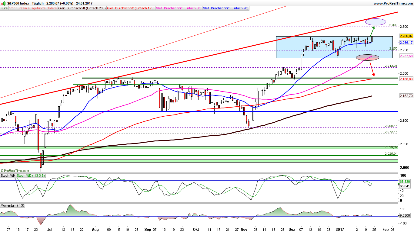 2017-Januar-25 US-Märkte & Indizes Tagesausgabe "Die Bullen proben den Ausbruch"