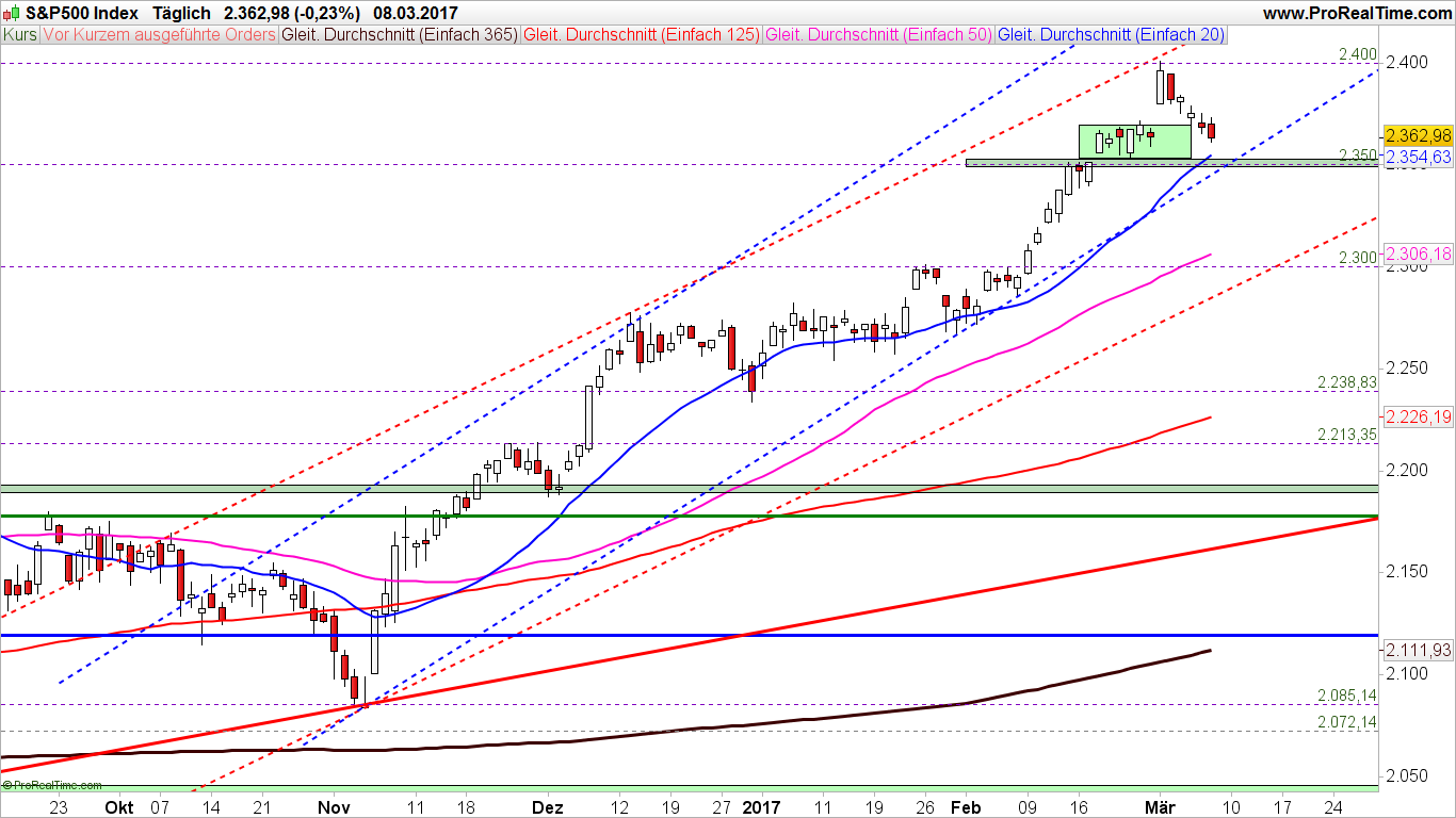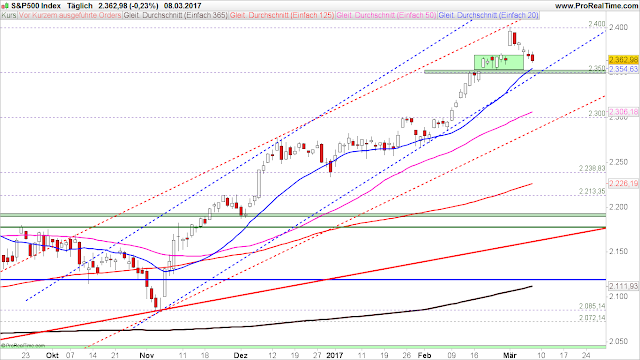 2017-März-09 US-Märkte & Indizes Tagesausgabe "Nächstes Ziel ist die Unterstützung bei 2.350 Punkten"