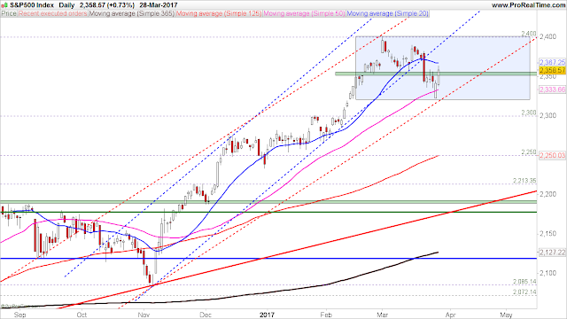 2017-März-29 US-Märkte & Indizes Tagesausgabe "Direkte Fortsetzung des mittelfristigen Aufwärtstrends ist wenig wahrscheinlich"