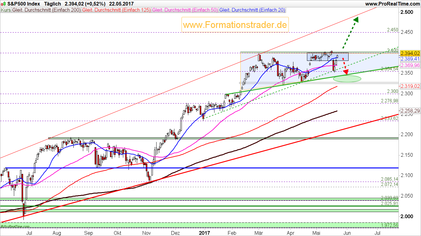2017-Mai-23 US-Märkte & Indizes Tagesausgabe "Leitindex – Widerstand bei 2.400 im Visier!"