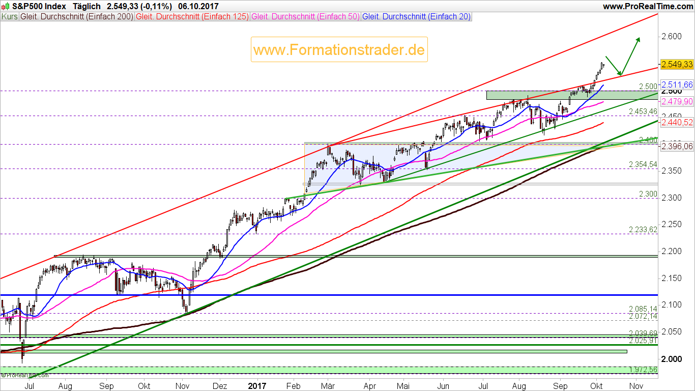 Kurzum: Der mittelfristige Trend ist sowohl beim DAX als auch beim S&P 500 bullisch zu bewerten. Weiteres Aufwärtspotential ist vorhanden, so dass jede Konsolidierung für mittelfristige Einstiege auch bei Einzelaktien genutzt werden kann. Eine Konsolidierung dürfte dem Aufwärtstrend meiner Einschätzung nach nicht gefährlich werden können und bietet viel mehr ein gutes Chance/Risiko-Verhältnis für einen Einstieg.