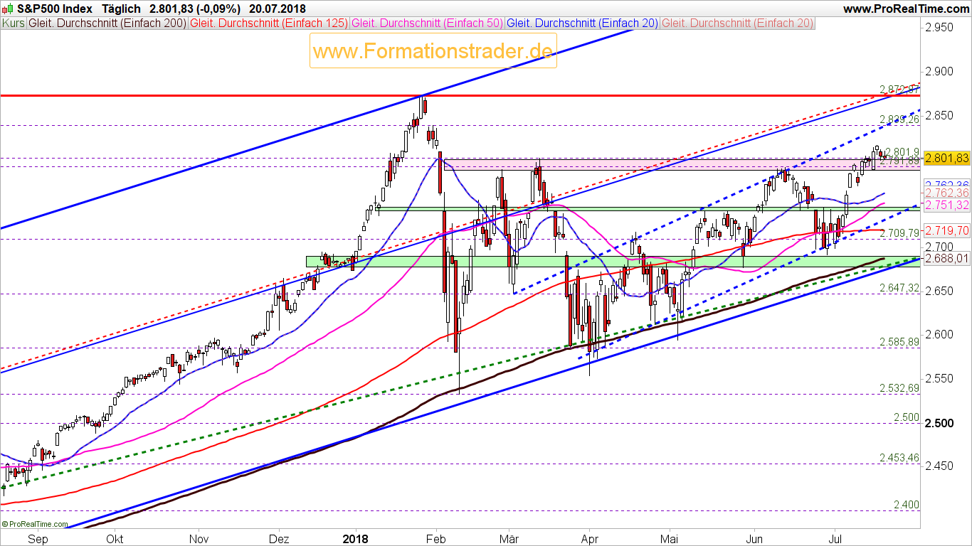 2018-Juli-23 Leitindex S&P 500 Wochenausgabe "Neueinstiege bieten nur ein mäßiges Chance/Risiko-Verhältnis"