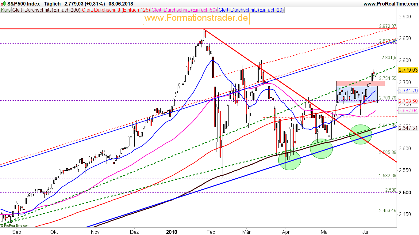 2018-Juni-10 Leitindex S&P 500 Wochenausgabe "Der Trend im Leitindex ist Long. Der Beginn einer neuen Hauptbewegung ist sehr wahrscheinlich."