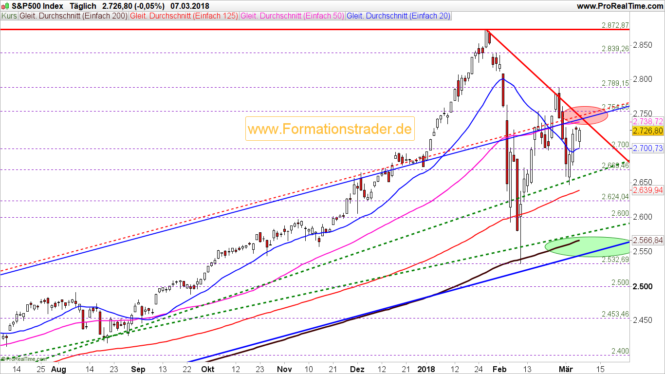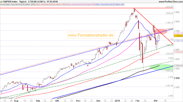 2018-März-08 Leitindex S&P 500 Tagesausgabe "Das „Buy the Dip“ Verhalten der Marktteilnehmer im Aktienmarkt ist eine positive Indikation"
