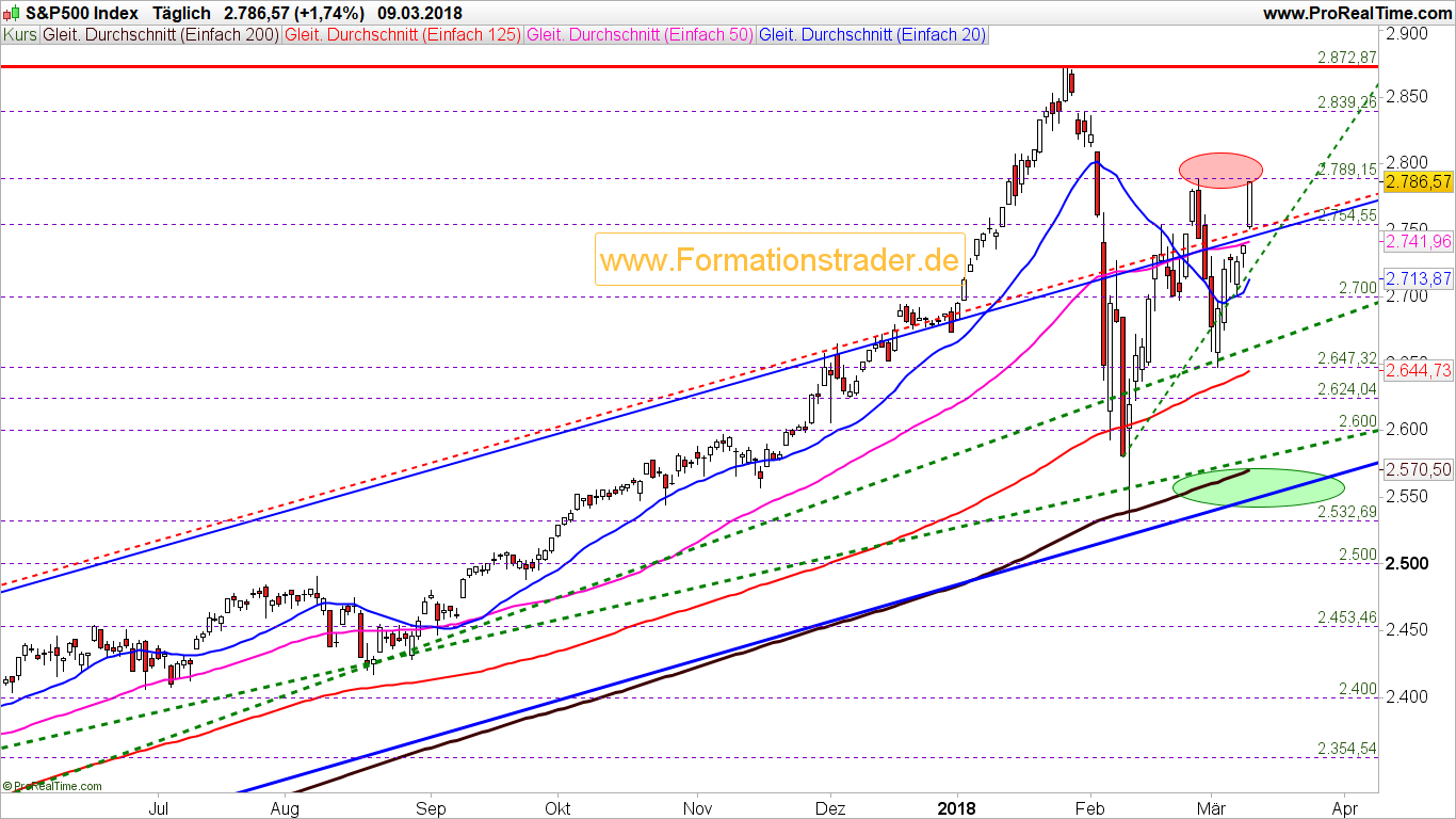 2018-März-12 Leitindex S&P 500 Wochenausgabe "Die Bullen setzen sich durch! Der Aufwärtstrend steht vor seiner Fortsetzung."
