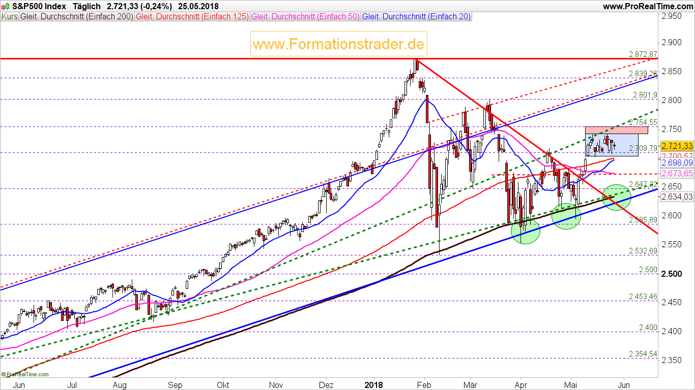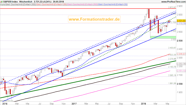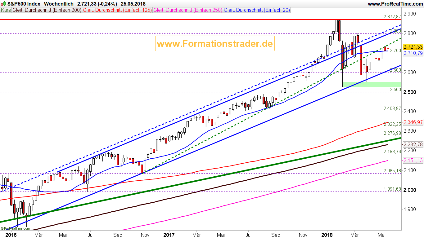 2018-Mai-27 Leitindex S&P 500 Wochenausgabe "High-Base-Konsolidierung mit erhöhter Wahrscheinlichkeit auf weiter steigende Kurse"