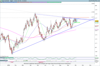 Es gilt abzuwarten, dass die Zone bei 0,7730 per Tagesschlusskurs signifikant überwunden wird. Erst dann wären Ziele bei 0,7830 (horizontale Marke) sowie übergeordnet 0,80 möglich.
