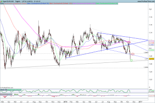 Die Wahl in den USA sorgte auch bei den FX-Märkten für starke Schwankungen. Nach der Entscheidung kam die Paarung unter Druck und die Bären zeigten eine starke Vorstellung. Innerhalb von nur vier Handelstagen fiel die Paarung vom Hoch bei 1,13 um mehr als 590 Pips. Die Indikatoren sind vor diesem Hintergrund auf Tagesbasis sowie der kleineren Zeiteinheiten stark überverkauft. Ein Short-Einstieg auf jetzigen Niveau bietet sich mangels CRV nicht mehr an.