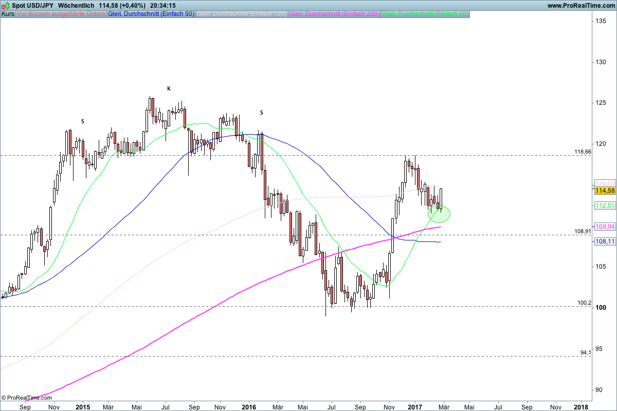| USD/JPY Wochenchart |
